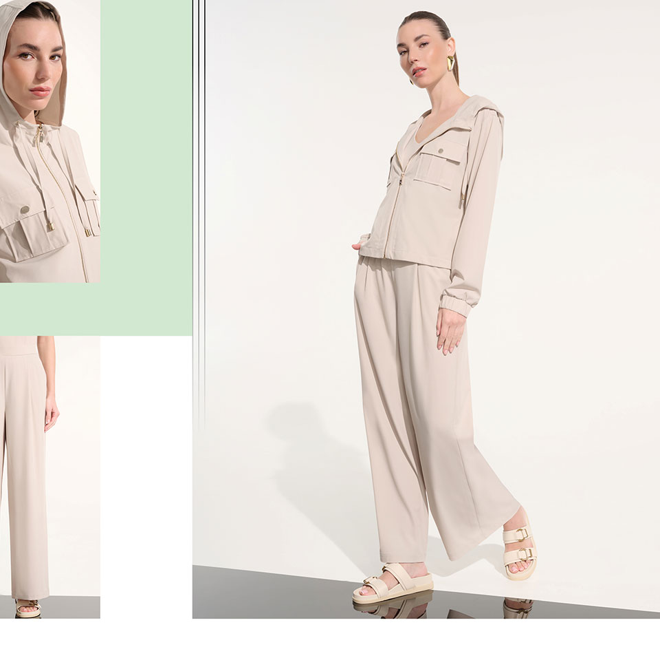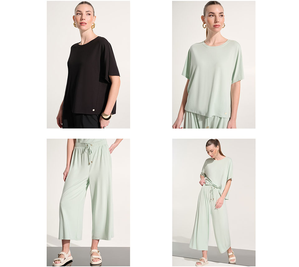 La colección Joseph Ribkoff Sport 262 es ideal para viajar, para relajarse y para el tiempo libre, todo a la vez. Las prendas ligeras con cremallera y detalles de malla, los tejidos suaves como la mantequilla y los vestidos fáciles de usar con lazos que realzan la cintura se mueven con la misma naturalidad con la que se desarrolla su tiempo libre. Son perfectas para coger un vuelo de última hora, ir a su cafetería favorita o hacer recados durante el fin de semana, por lo que se convertirán en sus prendas favoritas para lograr el equilibrio perfecto entre la comodidad y el estilo.