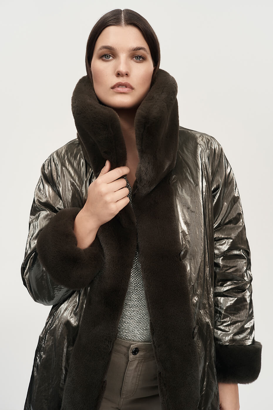 LLEVE LOS COLORES NEUTROS A NUEVAS ALTURAS AÑADIENDO ACENTOS METÁLICOS A LOS BLANCOS INVERNALES, TRANSFORMÁNDOLOS EN CONJUNTOS ELEGANTES QUE CAUTIVAN CON CADA BRILLO. YA SEA A TRAVÉS DE ABRIGOS LLAMATIVOS O DE ACCESORIOS SUTILES, ESTA TEMPORADA LO METÁLICO LLEGA A NUESTRAS VIDAS Y A NUESTROS ARMARIOS.
