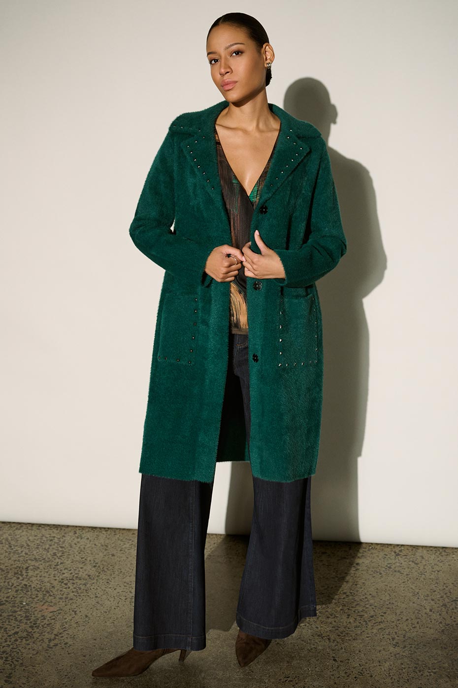 Untamed se décline en une symphonie de Vert opulent, Acajou, Fauve et Noir. Les imprimés abstraits et les touches animales s'unissent au velours somptueux, au faux suède et aux accents métalliques élégants dans la confection de tricots et d'articles à coordonner stylés, à l'assurance indéniable. Le denim polyvalent structure les tenues qui accompagnent parfaitement les journées de détente et les soirées élégantes. De jour comme de soir, Sauvage procure une sensation de plaisir et d'éloquence, un style à la fois libre et raffiné.